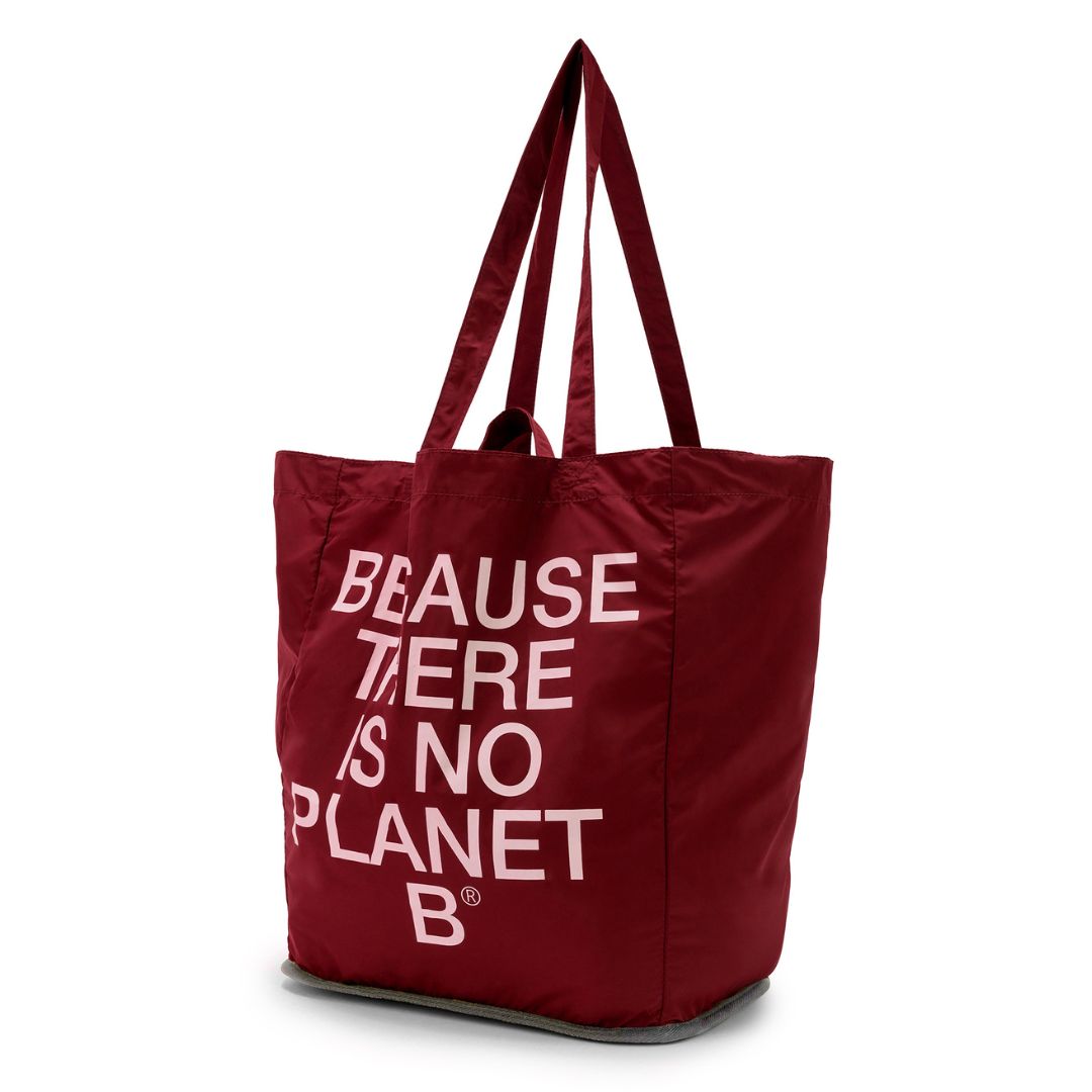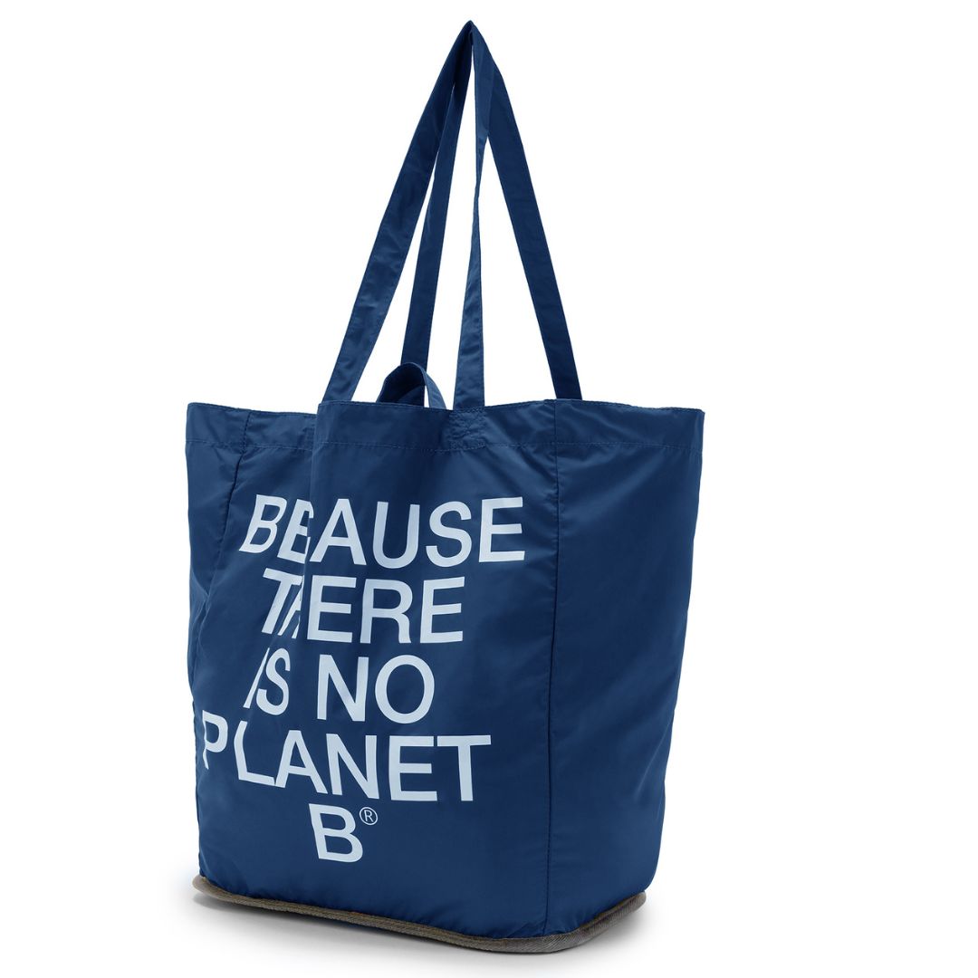 Su diseño práctico incorpora un sistema de plegado compacto con goma elástica y botón, ideal para llevarlo siempre contigo como alternativa a las bolsas de un solo uso. Las asas, también elaboradas en poliéster reciclado, permiten llevarlo en mano o al hombro. Un bolsillo interior abierto facilita la organización de los objetos esenciales.