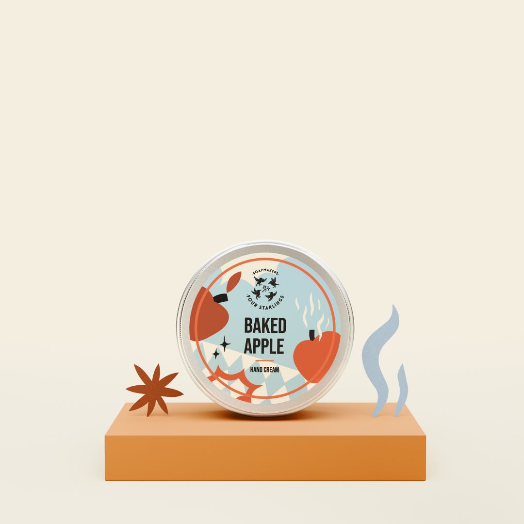 Crema de manos nutritiva con aroma a manzana asada. Elaborada con manteca de karité, aceite de almendras y jojoba. Repara, suaviza y protege la piel seca sin siliconas ni perfumes sintéticos.