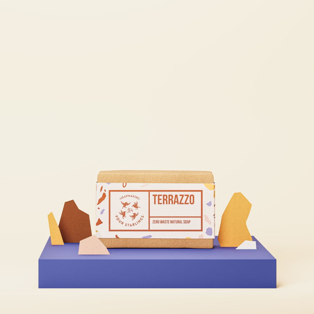 Descubre Terazzo, el jabón zero waste más creativo y visual de 4 Szpaki: una pastilla artesanal que incorpora recortes de otros jabones producidos, formando una mosaico único en cada unidad. No hay dos iguales.