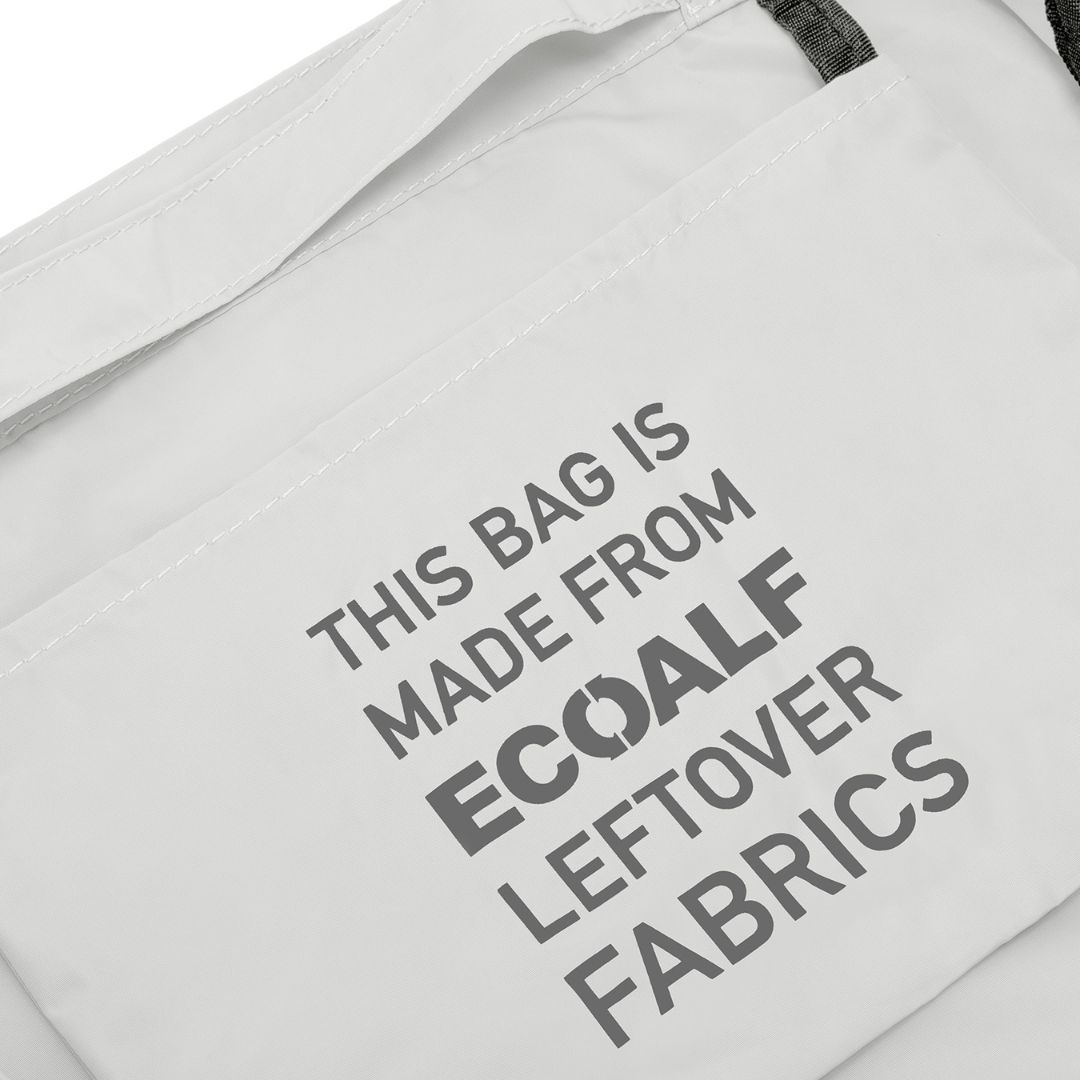 - La Bolsa Pacho Off-White está elaborada con tejidos reciclados y materiales recuperados. Es ligera, cómoda y muy funcional: se pliega fácilmente en un formato compacto para tenerla siempre a mano y evitar el uso de bolsas desechables. Su tamaño amplio y sus asas resistentes la convierten en una opción ideal para compras, viajes o tu día a día sin generar más residuos.
