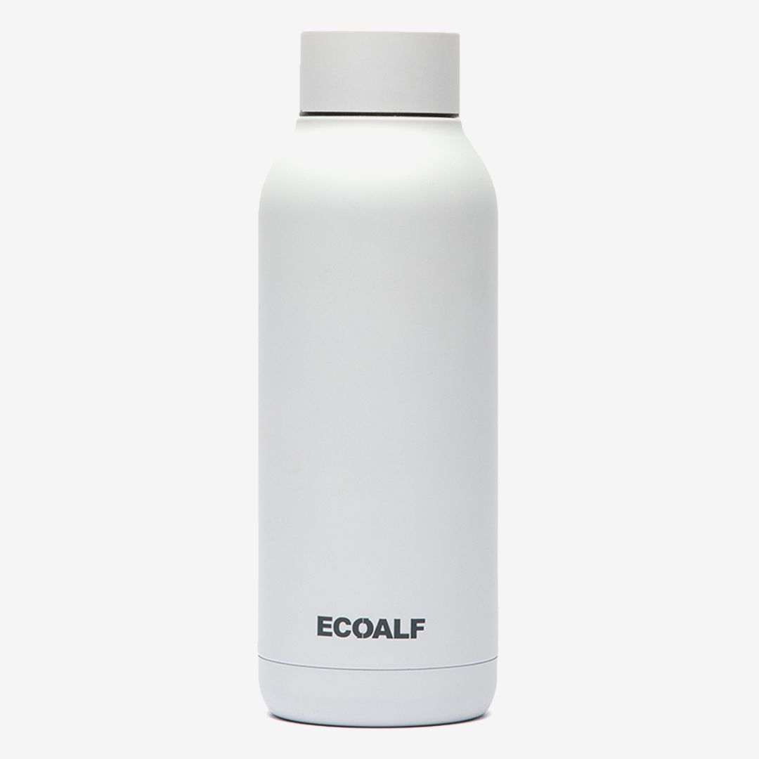 Un pack limpio y consciente: botella reutilizable Artica + bolsa Pacho Off‑White hecha con materiales reciclados.