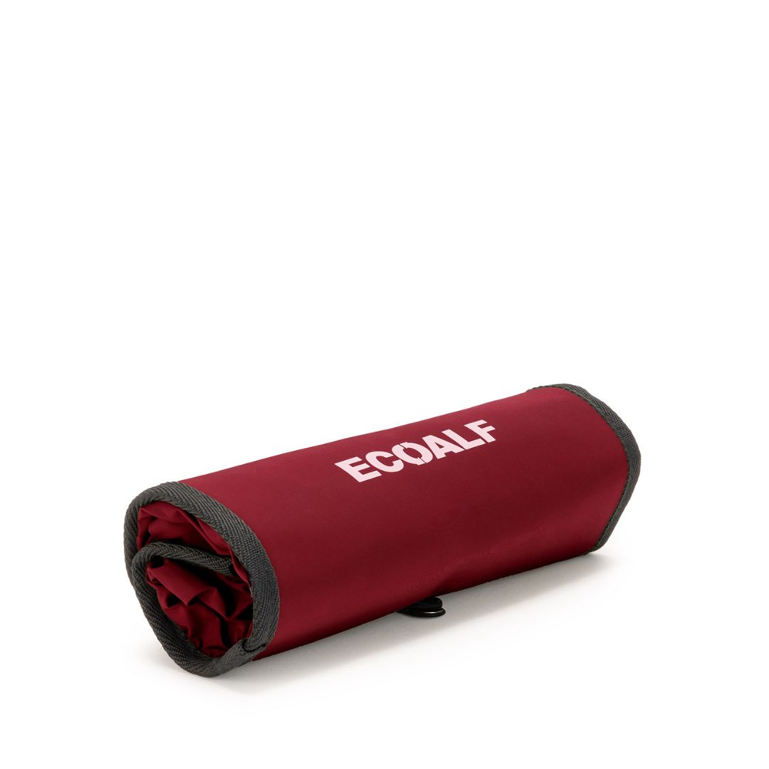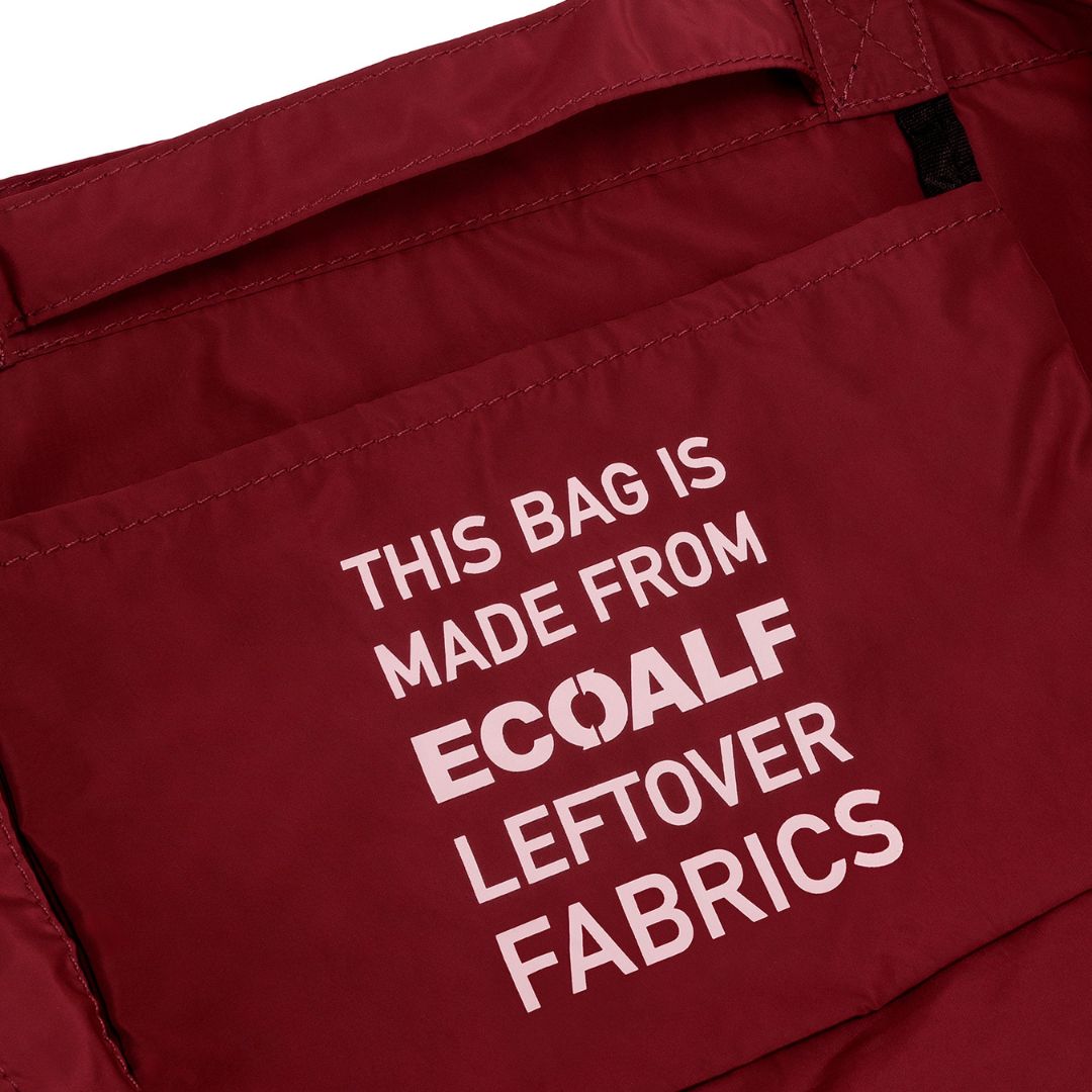 - La bolsa Pacho color garnet (rojo), fabricada con tejidos residuales de Ecoalf y pensada para plegarse y transportarse fácilmente, reduciendo así la dependencia de bolsas desechables.