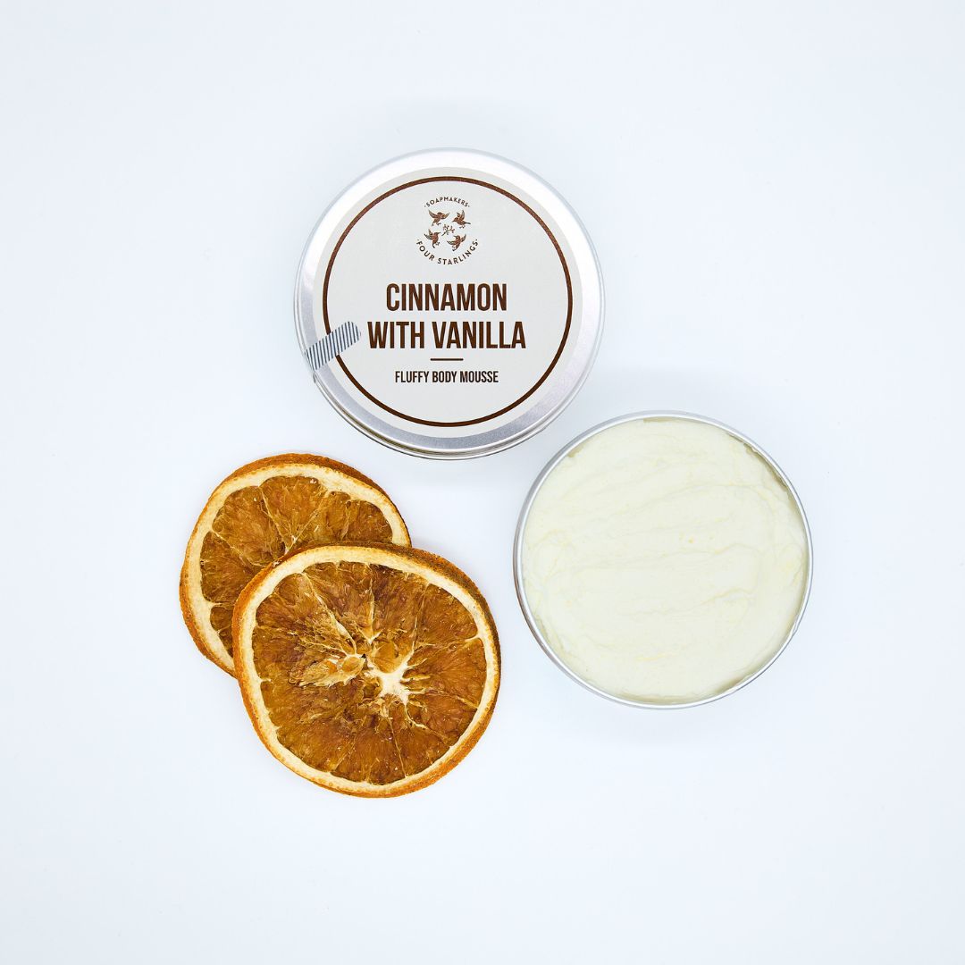 • Mousse corporal «Canela & Vainilla»: Textura tipo mousse que al aplicarla sobre piel húmeda se transforma en un aceite ligero. Contiene manteca de karité y aceites vegetales (coco, colza, lino, jojoba) y aceites esenciales de canela y vainilla. Ideal para nutrir la piel de forma profunda y reconfortante. (El Gramo Original)