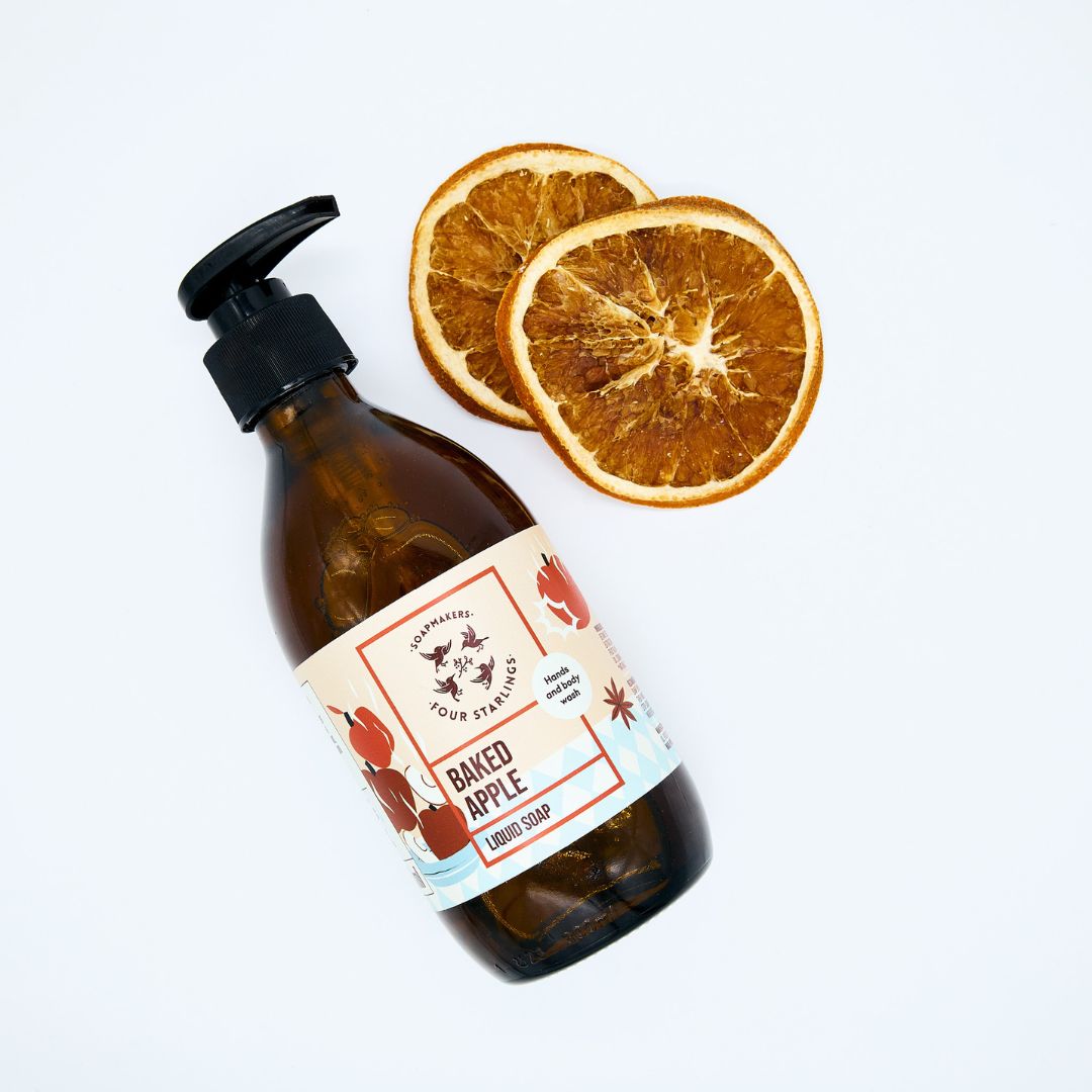 • Gel de ducha «Manzana Asada»: Un gel artesanal vegano que limpia y al mismo tiempo hidrata, con consistencia espesa, aroma de canela, vainilla y sándalo, y base de aceites de coco y oliva sin agua añadida. (El Gramo Original)