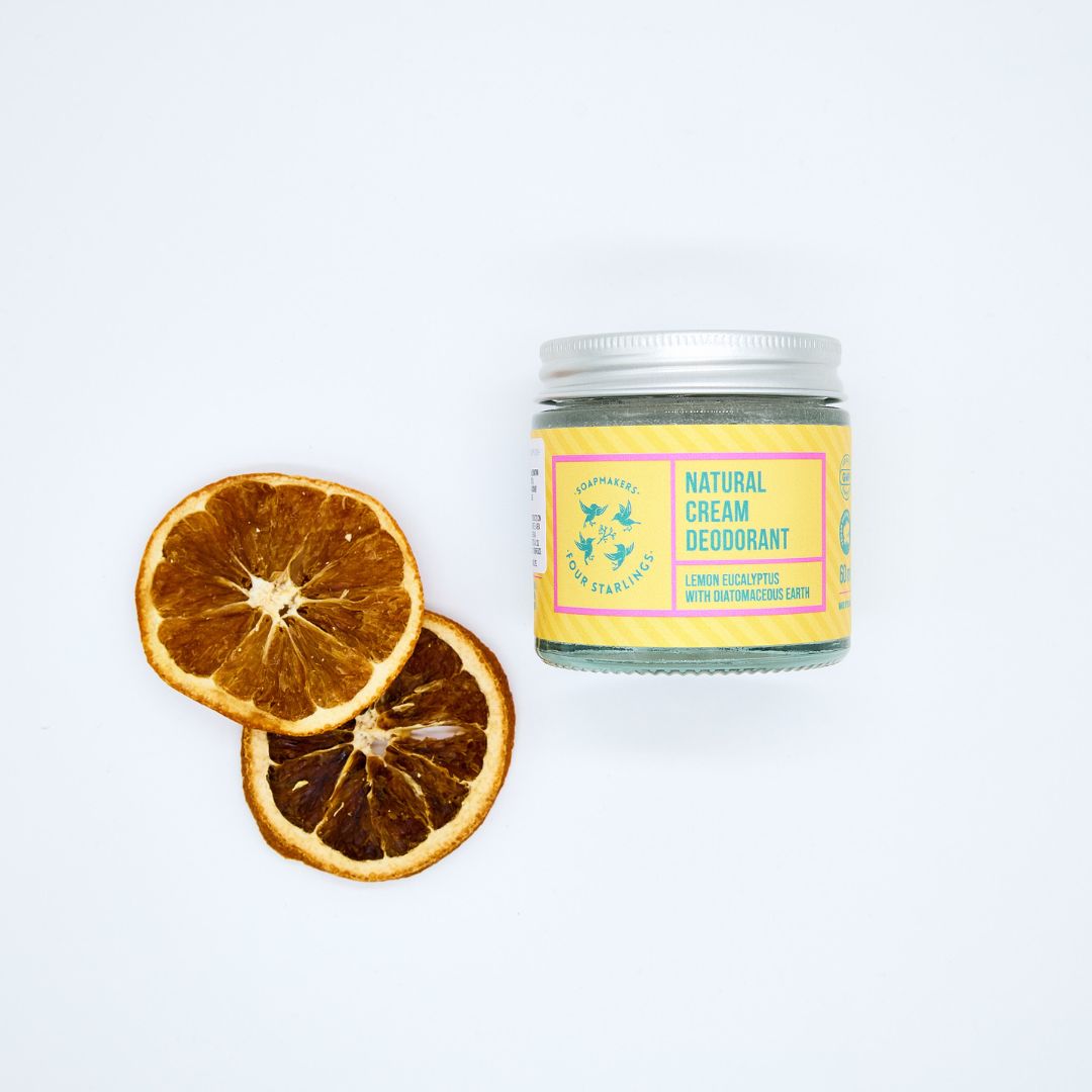 • Desodorante natural «Limón y Eucalipto»: Crema vegana que absorbe la humedad y combate malos olores sin bloquear la transpiración. Con manteca de karité, aceites de coco y almendra y aceites esenciales de limón y eucalipto para una sensación fresca todo el día. (El Gramo Original)