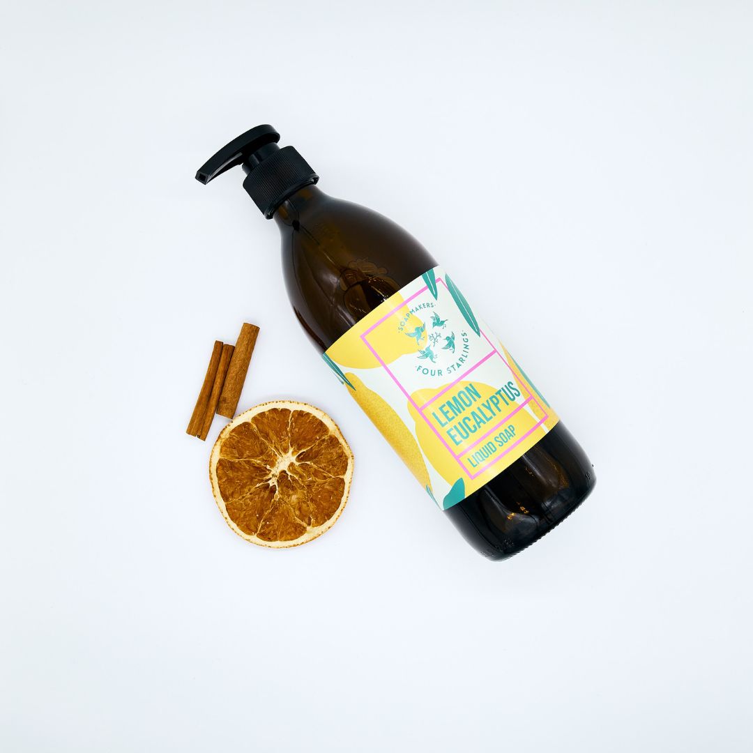 • Gel de ducha «Eucalipto y Limón»: Gel líquido de consistencia densa, espumosa, elaborado artesanalmente sin agua añadida. Limpia en profundidad mientras envuelve la piel con notas cítricas y herbales de limón y eucalipto. (El Gramo Original)