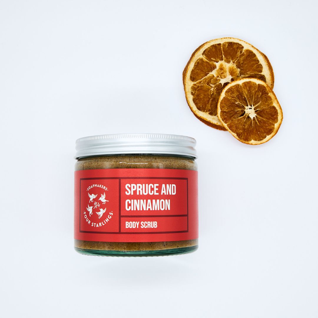 - Exfoliante corporal “Abeto & Canela”: Un peeling 100 % natural de azúcar, semillas molidas y aceites esenciales de abeto y canela que exfolia, nutre y revitaliza la piel. Su aroma especiado-balsámico recuerda a un paseo por bosque nevado. (El Gramo Original)