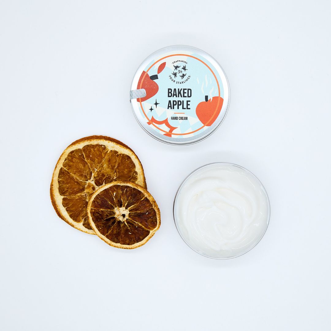 - Crema de manos “Manzana Asada”: Crema nutritiva con manteca de karité, aceite de almendras y jojoba, formulada sin siliconas ni perfumes sintéticos. Aroma cálido a manzana asada, canela y vainilla. Protege, repara y deja las manos suaves al tacto. (El Gramo Original)